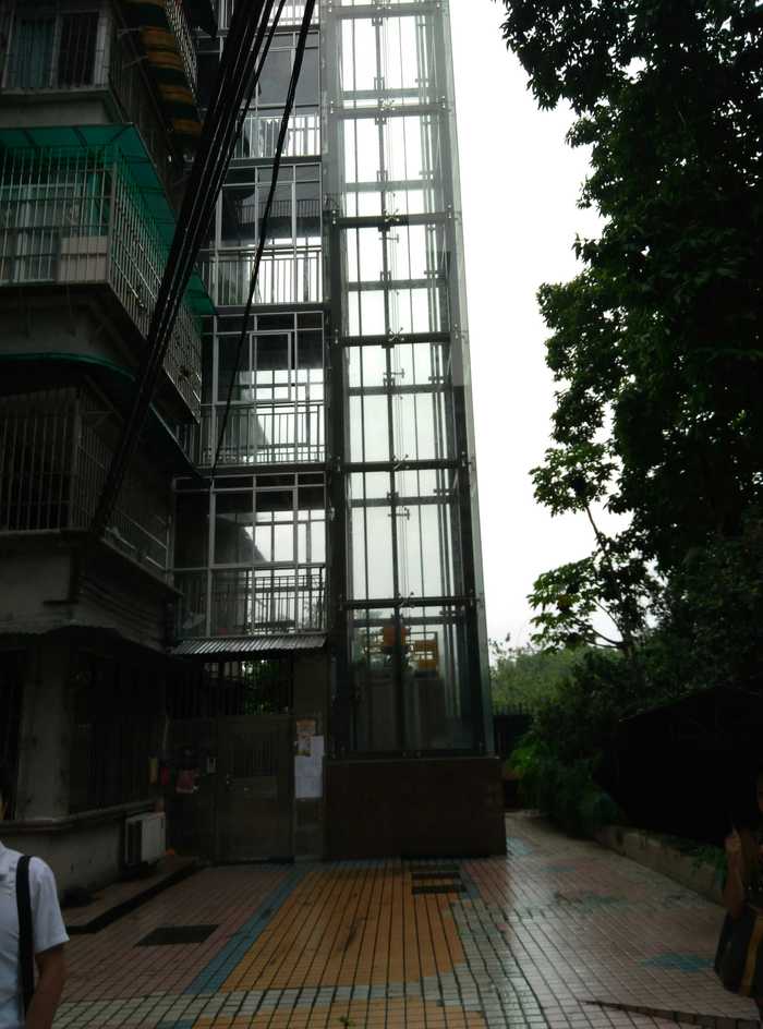 ⑤ 觀光電梯,轎廂壁透明,供乘客觀光用的電梯。